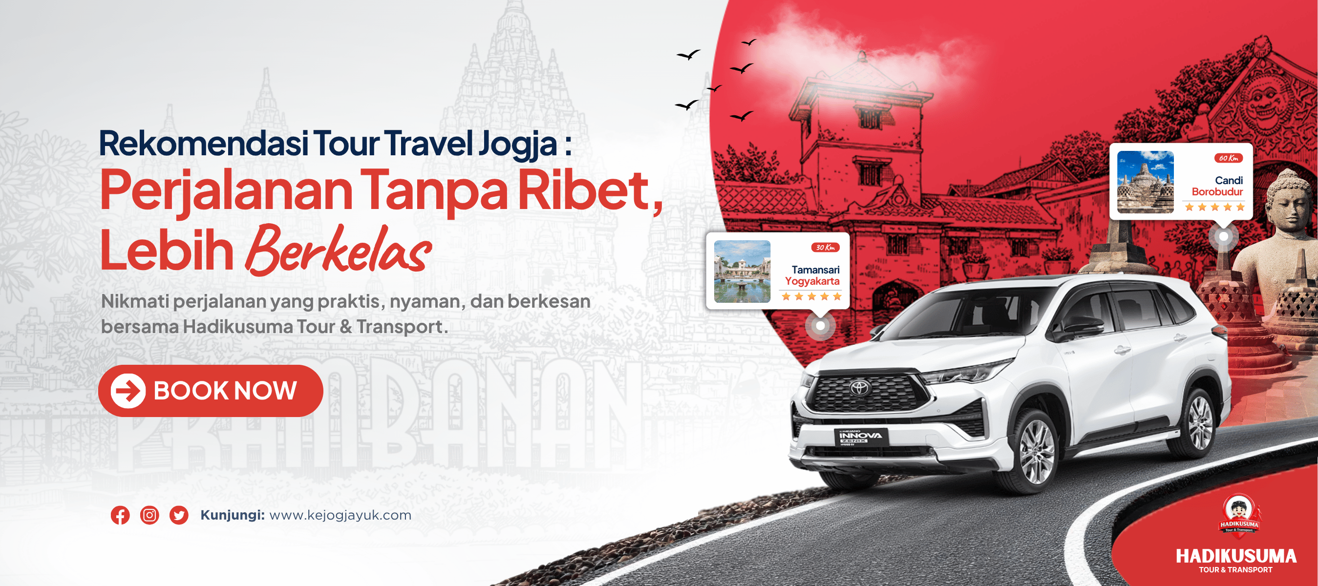 Dengan dukungan armada lengkap, driver profesional, serta sistem layanan yang responsif, Kejogjayuk.com menjadi solusi terbaik bagi Anda yang ingin menikmati keindahan Yogyakarta tanpa repot mengatur perjalanan sendiri.